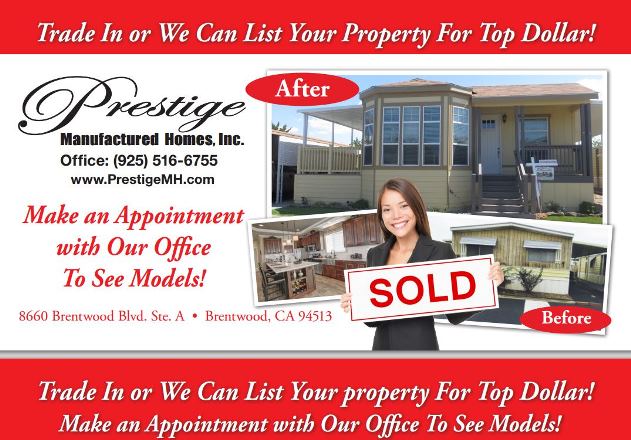 Contact Prestige Manufactured Homes at 925-516-6755 | Site Creation by iSDL Ventures, publisher of EverythingBrentwood.com.